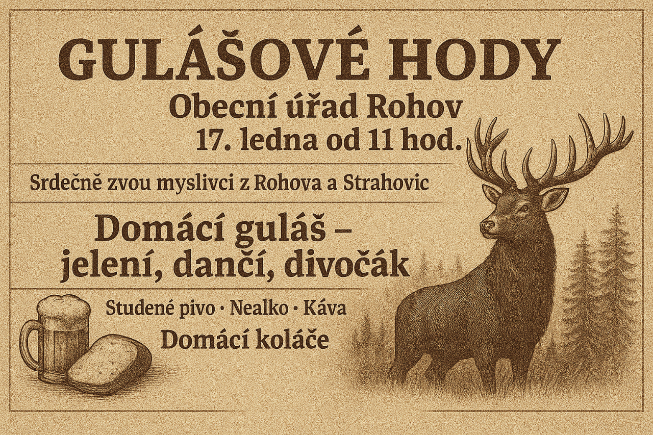 V sobotu 17. ledna 2026 od 11.00 hod. v Obecním domě v Rohově